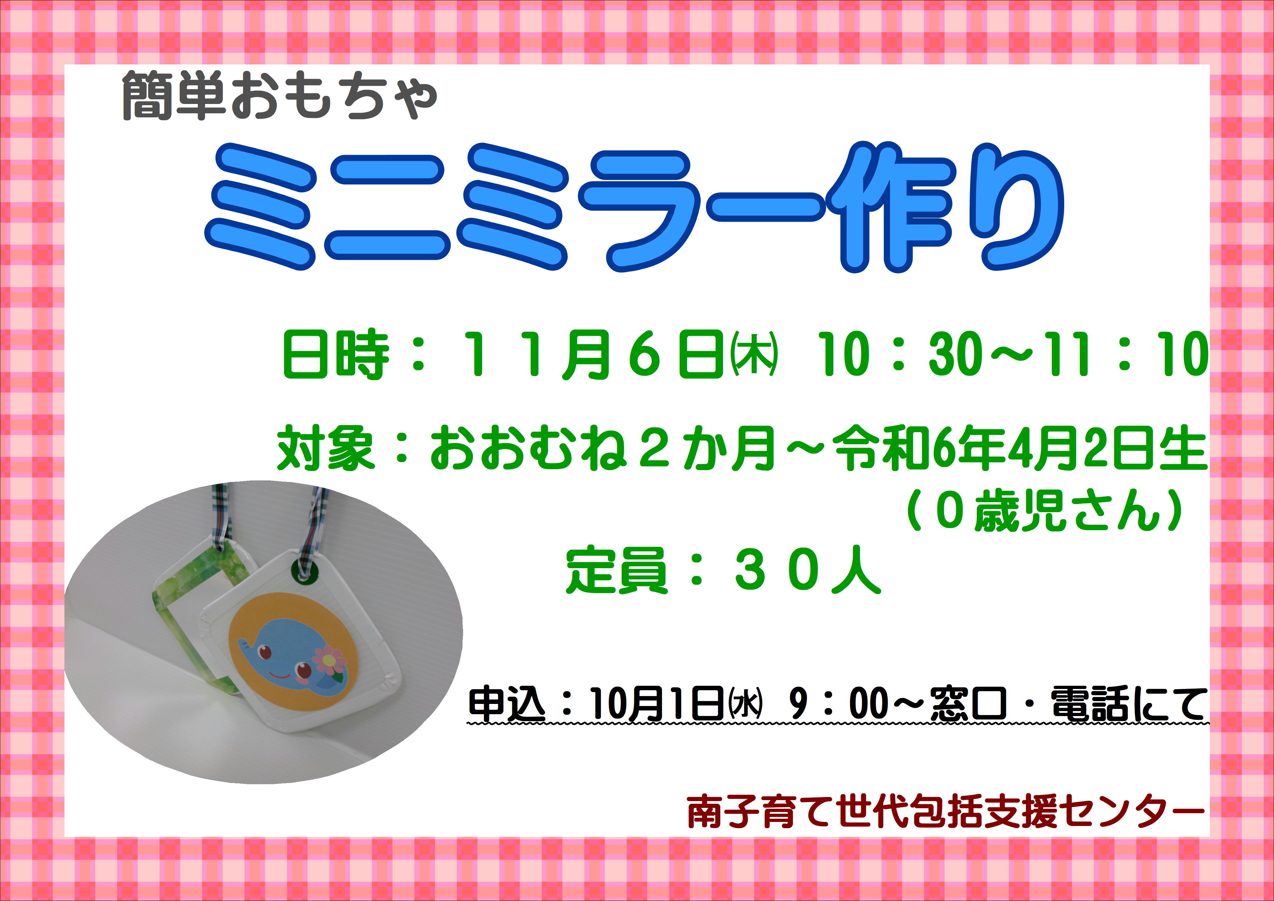 ■申込み/10月1日(水)9:00~ 窓口または電話で
